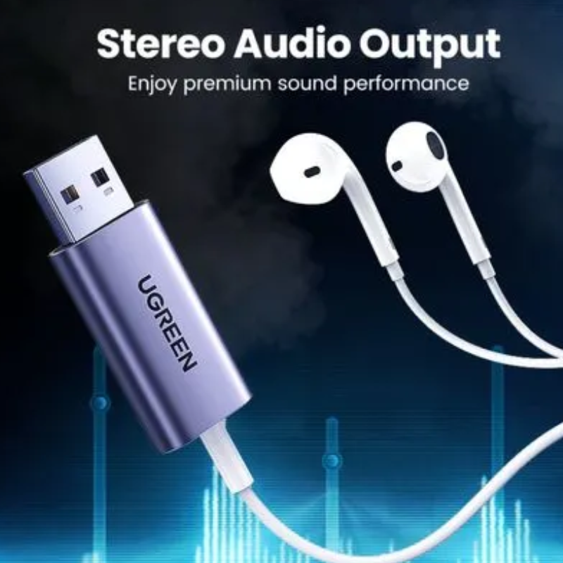 El UGREEN CM383 es un adaptador de sonido USB compacto y elegante que convierte cualquier puerto USB en una salida de audio y micrófono de 3.5 mm, ideal para conectar auriculares, micrófonos o altavoces a computadoras, laptops o consolas que no cuentan con entrada de audio tradicional.