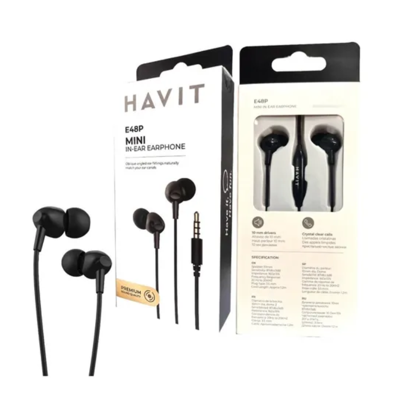 AUDIFONO MANOS LIBRE ALÁMBRICO HAVIT E48P/COLOR NEGRO