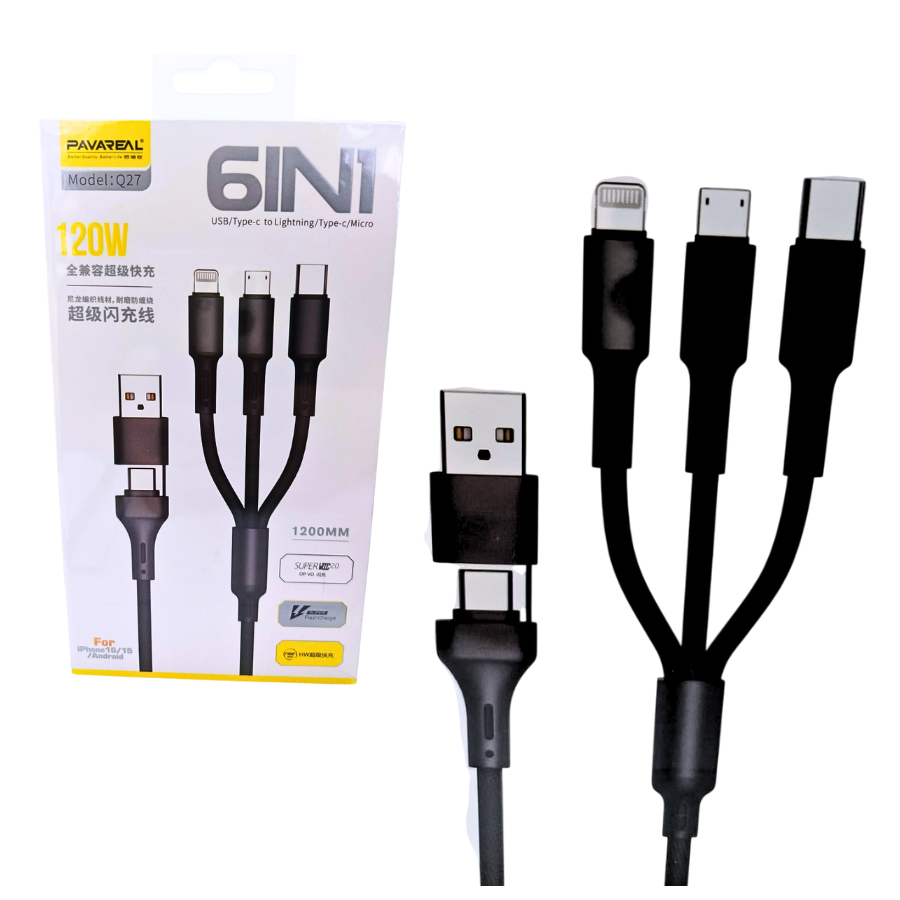 CABLE PAVAREAL Q27/ USB-C CON OTG-A / A LIGHTNING/MICRO/USB-C / 120W