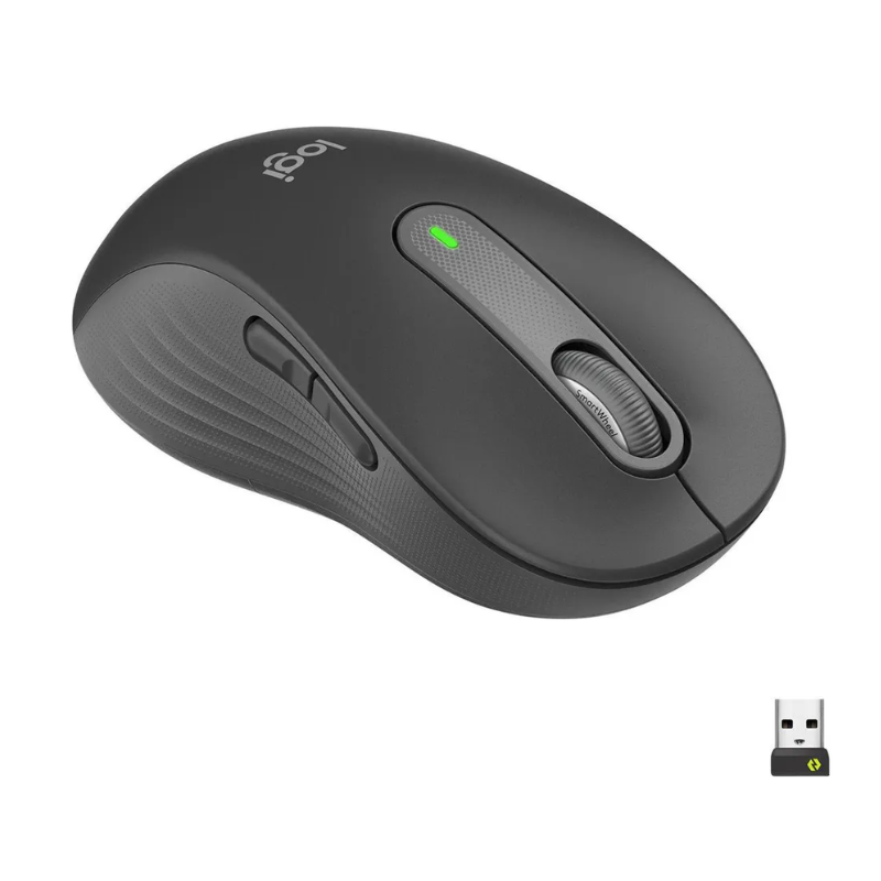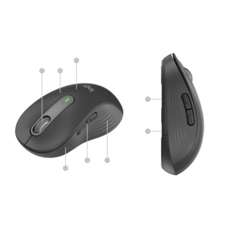 • El Logitech Signature M650 Silent Touch es un mouse inalámbrico diseñado para un uso cómodo y silencioso, ideal tanto para oficina como para uso personal. Su diseño es ergonómico, ofreciendo soporte para la mano durante largas jornadas de trabajo, y su tecnología silenciosa reduce el ruido al hacer clic.