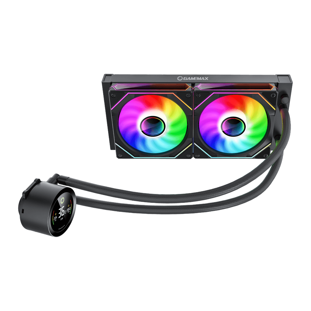 GameMax IceBurg 240V Digital BK, enfriador líquido para CPU, ventiladores ARGB direccionables de 240 mm, 245 W TDP, enfriador de agua AIO