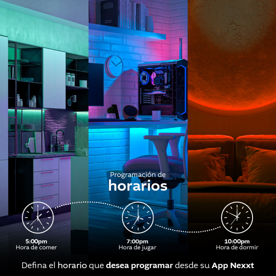 - Combinaciones de colores: Hasta 16 millones de combinaciones de colores + 44 escenas de luz + escenas personalizadas